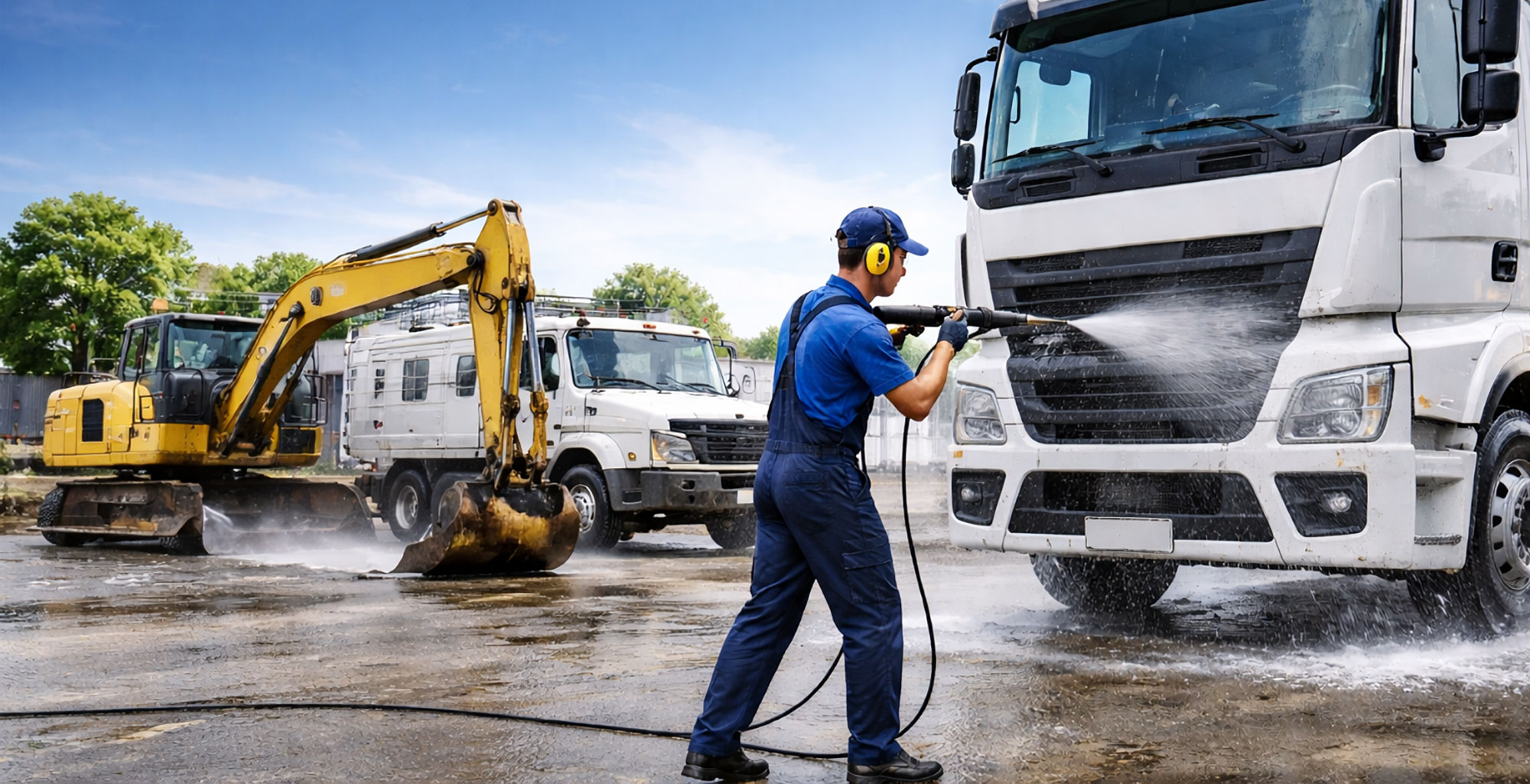Professional washing services for trucks, fleets, and heavy equipment to remove road grime, grease, and jobsite buildup.